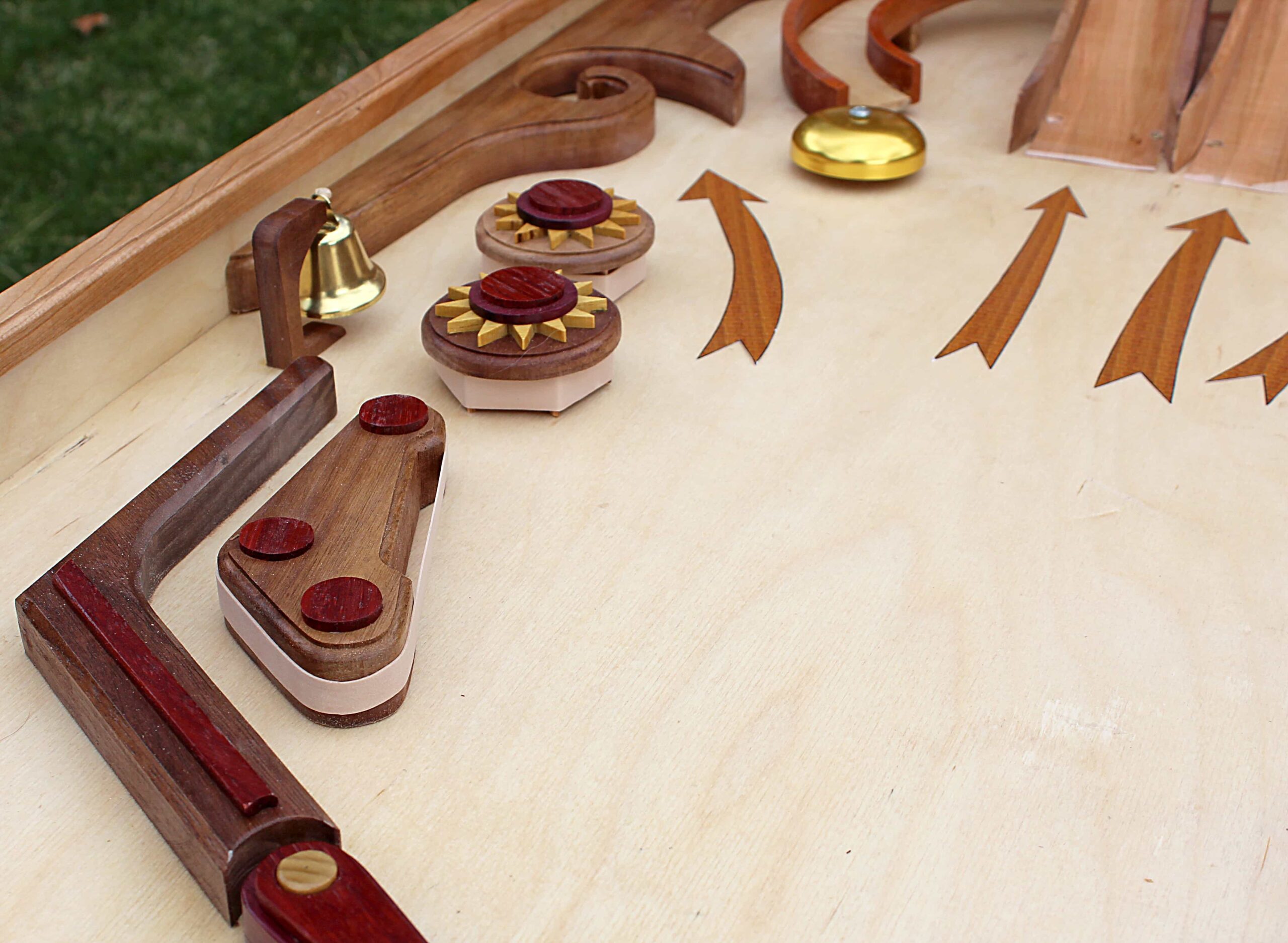 The Marble Pinball Machine woodworking plan, is based on the enormous popularity of commercial pinball machines, but now, using marbles. Not only is standard horizontal operation possible, but also exclusive and unique vertical action with marbles being propelled up the back panel. The launcher can shoot one marble or over a half dozen at a time. Buttons on the sides operate flippers just like commercial machines to keep marbles in play. Marbles can hit targets throughout the play surface. It’s an addictive, fast paced marble marvel for young and old. Most of the project is wood. Only a handful of hardware is required with suggested parts located. None come with the plan. Only common shop tools are needed to build the project. Dimensions: Table length 40 1/2″, table width 23 1/2″, the height from the floor to the table’s highest point 39″, height of the back panel above the table is 19″. The completed Marble Pinball table can easily fit through a standard doorway.